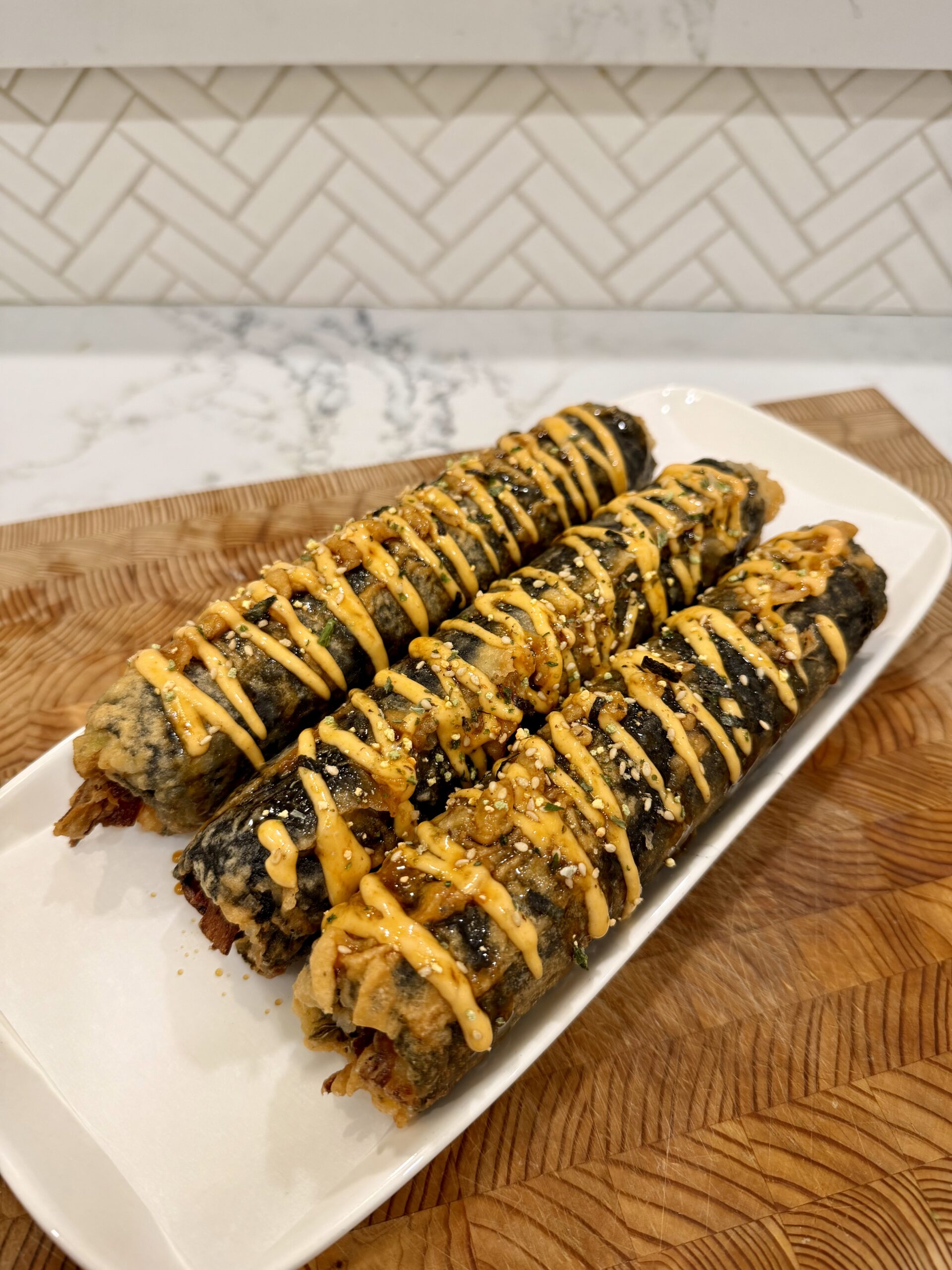 Spicy mayo adds creamy heat and richness that pairs perfectly with the crispy tempura coating and fresh sushi fillings.